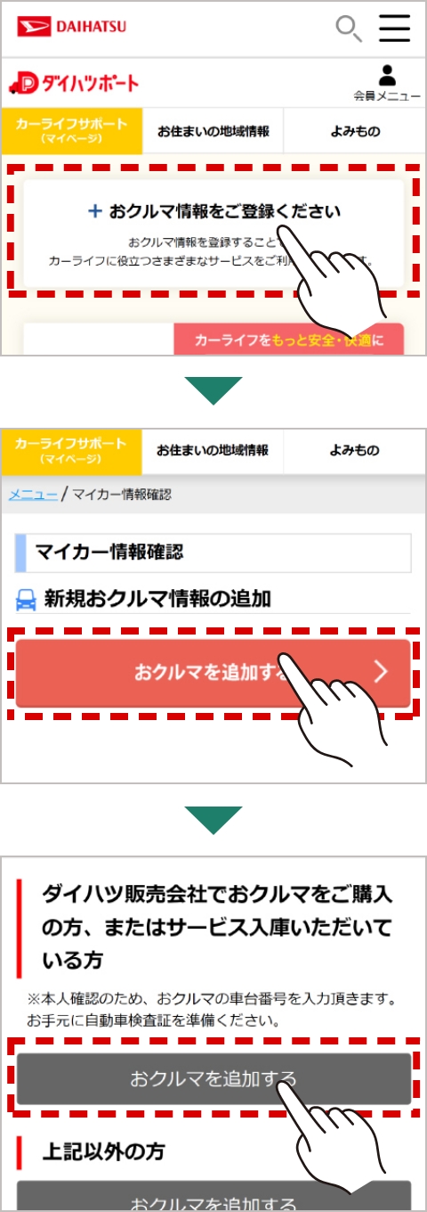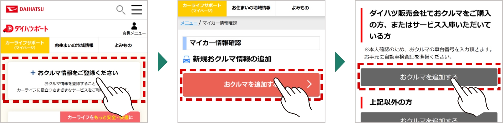 ※2台目以降の場合は「マイカー情報を全て見る」→「おクルマを追加する」を選択。